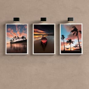 Feitos em papel fotográfico brilhante de altíssima resolução, esses quadros apresentam uma excelente qualidade de imagem, reproduzindo fielmente os detalhes e cores da cena do pôr do sol na praia. Seu acabamento impecável traz ainda mais sofisticação para a decoração.