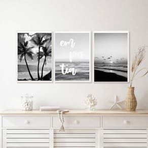 Kit 3 quadros praia preto e branco empatia 45x34cm