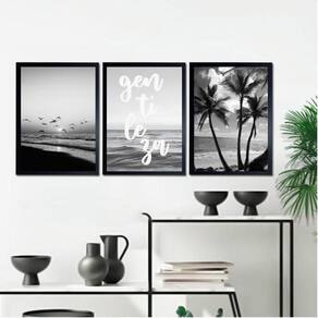 Kit 3 quadros praia preto e branco gentileza 24x18cm Moldura: madeira branca Informações do produto tire todas as suas dúvidas no descritivo abaixo: decoração para quarto, sala, cozinha, escritório, área gourmet e muito mais. Chega de paredes vazias medidas - cada peça tem 24x18cm a5 . Material do papel - papel fotográfico brilhante de altíssima resolução acabamento - todos os quadros são acompanhados de uma película de acetato para proteção da imagem. - os quadros são embalados de forma segura com plástico bolha com camada dupla de acordo com o tamanho dos quadros. Garantia - garantia de 3 meses. Meu quadro chegou. Como posso fixá-lo Você precisa apenas de um martelo e um prego, pois os quadros já vão acompanhados de penduradores. Esta é a forma mais indicada. Caso prefira, você pode utilizar uma fita dupla face neste caso, sugerimos de alta qualidade para evitar que descole e seu quadro caia . Como posso limpar meu quadro A limpeza é feita como um móvel comum da sua casa. Apenas um pano seco ou espanador são suficientes para tal Ean: 7898584700736