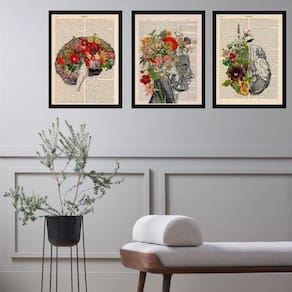 Kit 3 quadros psiquiatria cérebro flores 33x24cm - com vidro Moldura: madeira preta Informações do produto tire todas as suas dúvidas no descritivo abaixo: decoração para quarto, sala, cozinha, escritório, área gourmet e muito mais. Chega de paredes vazias medidas - cada peça tem 33x24cm a4 . Material do papel - papel fotográfico brilhante de altíssima resolução acabamento - todos os quadros são acompanhados de vidro para proteção da imagem. - moldura em madeira maciça na cor preta ou branca conforme produto escolhido e pendurador . - os quadros são embalados de forma segura com plástico bolha com camada dupla de acordo com o tamanho dos quadros. Garantia - garantia de 3 meses. Meu quadro chegou. Como posso fixá-lo Você precisa apenas de um martelo e um prego, pois os quadros já vão acompanhados de penduradores. Esta é a forma mais indicada. Como posso limpar meu quadro A limpeza é feita como um móvel comum da sua casa. Apenas um pano seco ou espanador são suficientes para tal