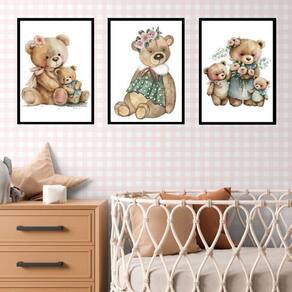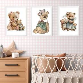 Kit 3 quadros quarto bebê - ursinha vintage 45x34cm Moldura: madeira branca Informações do produto tire todas as suas dúvidas no descritivo abaixo: decoração para quarto, sala, cozinha, escritório, área gourmet e muito mais. Chega de paredes vazias. Medidas - cada peça tem 45x34cm a3 . Material do papel - papel fotográfico brilhante de altíssima resolução acabamento - todos os quadros são acompanhados de uma película de acetato para proteção da imagem. - os quadros são embalados de forma segura com plástico bolha com camada dupla de acordo com o tamanho dos quadros. Garantia - garantia de 3 meses. Meu quadro chegou. Como posso fixá-lo Você precisa apenas de um martelo e um prego, pois os quadros já vão acompanhados de penduradores. Esta é a forma mais indicada. Caso prefira, você pode utilizar uma fita dupla face neste caso, sugerimos de alta qualidade para evitar que descole e seu quadro caia . Como posso limpar meu quadro A limpeza é feita como um móvel comum da sua casa. Apenas um pano seco ou espanador são suficientes para tal