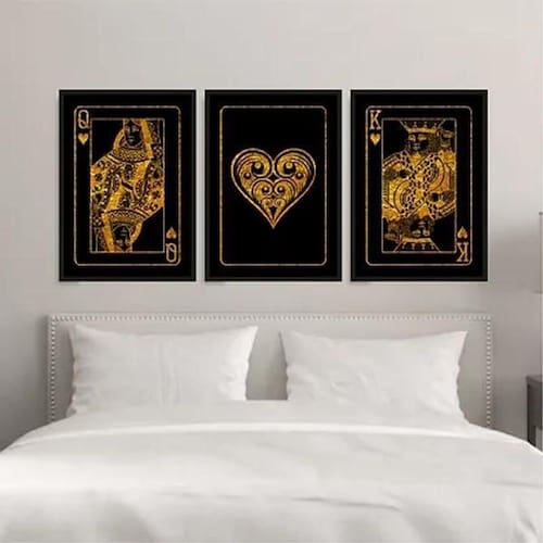 Invista em um ambiente cheio de estilo e personalidade com o Kit 3 Quadros Rei E Rainha De Copas Preto E Dourado 33X24Cm. Adquira já o seu e transforme suas paredes em verdadeiras obras de arte.