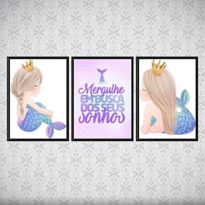 Kit 3 quadros sereinha busque seus sonhos 45x34cm - com vidro Moldura: madeira preta Informações do produto tire todas as suas dúvidas no descritivo abaixo: decoração para quarto, sala, cozinha, escritório, área gourmet e muito mais. Chega de paredes vazias medidas - cada peça tem 45x34cm a3 . Material do papel - papel fotográfico brilhante de altíssima resolução acabamento - todos os quadros são acompanhados de vidro para proteção da imagem. - moldura em madeira maciça na cor preta e pendurador . - os quadros são embalados de forma segura com plástico bolha com camada dupla de acordo com o tamanho dos quadros. Garantia - garantia de 3 meses. Meu quadro chegou. Como posso fixá-lo Você precisa apenas de um martelo e um prego, pois os quadros já vão acompanhados de penduradores. Esta é a forma mais indicada. Como posso limpar meu quadro A limpeza é feita como um móvel comum da sua casa. Apenas um pano seco ou espanador são suficientes para tal Ean: 7899049498472
