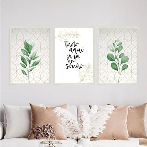 Kit 3 quadros tudo já foi um sonho 45x34cm Moldura: madeira branca Informações do produto tire todas as suas dúvidas no descritivo abaixo: decoração para quarto, sala, cozinha, escritório, área gourmet e muito mais. Chega de paredes vazias. Medidas - cada peça tem 45x34cm a3 . Material do papel - papel fotográfico brilhante de altíssima resolução acabamento - todos os quadros são acompanhados de uma película de acetato para proteção da imagem. - os quadros são embalados de forma segura com plástico bolha com camada dupla de acordo com o tamanho dos quadros. Garantia - garantia de 3 meses. Meu quadro chegou. Como posso fixá-lo Você precisa apenas de um martelo e um prego, pois os quadros já vão acompanhados de penduradores. Esta é a forma mais indicada. Caso prefira, você pode utilizar uma fita dupla face neste caso, sugerimos de alta qualidade para evitar que descole e seu quadro caia . Como posso limpar meu quadro A limpeza é feita como um móvel comum da sua casa. Apenas um pano seco ou espanador são suficientes para tal