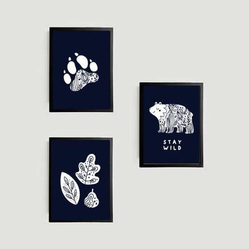 Kit 3 quadros urso escandinavo stay wild 24x18cm Moldura: madeira preta Informações do produto tire todas as suas dúvidas no descritivo abaixo: decoração para quarto, sala, cozinha, escritório, área gourmet e muito mais. Chega de paredes vazias medidas - cada peça tem 24x18cm a5 . Material do papel - papel fotográfico brilhante de altíssima resolução acabamento - todos os quadros são acompanhados de uma película de acetato para proteção da imagem. - moldura em madeira maciça na cor branca e pendurador móvel que pode ser retirado facilmente caso deseje fixar com fita dupla face. - os quadros são embalados de forma segura com plástico bolha com camada dupla de acordo com o tamanho dos quadros. - de 3 meses prazo de envio pedimos 24 horas úteis no máximo para enviar seu pedido após o envio, segue os prazos normais dos correios, cerca de 7 exceto para norte e nordeste, que pode ser de até 14 . Em diversas cidades, este prazo normalmente é reduzido, mas depende do prazo dos correios. Meu quadro chegou. Como posso fixá-lo Você precisa apenas de um martelo e um prego, pois os quadros já vão acompanhados de penduradores. Esta é a forma mais indicada. Caso prefira, você pode utilizar uma fita dupla face neste caso, sugerimos de alta qualidade para evitar que descole e seu quadro caia . Como posso limpar meu quadro A limpeza é feita como um móvel comum da sua casa. Apenas um pano seco ou espanador são suficientes para tal Marca: Não Informado