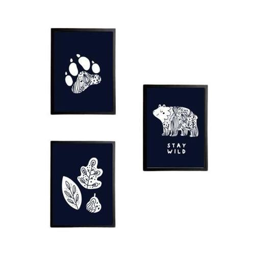 Kit 3 quadros urso escandinavo stay wild 33x24cm - com vidro Moldura: madeira preta Informações do produto Decoração para quarto, sala, cozinha, escritório, área gourmet e muito mais. Chega de paredes vazias medidas - cada peça tem 33x24cm a4 . Material do papel - papel fotográfico brilhante de altíssima resolução Acabamento - todos os quadros são acompanhados de vidro para proteção da imagem. - Moldura em madeira maciça na cor preta e pendurador . - Os quadros são embalados de forma segura com plástico bolha com camada dupla de acordo com o tamanho dos quadros. - de 3 meses. Meu quadro chegou. Como posso fixá-lo Você precisa apenas de um martelo e um prego, pois os quadros já vão acompanhados de penduradores. Esta é a forma mais indicada. Como posso limpar meu quadro A limpeza é feita como um móvel comum da sua casa. Apenas um pano seco ou espanador são suficientes para tal Marca: Não Informado