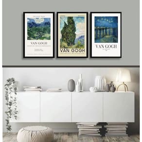 Kit 3 quadros van gogh - paisagens 45x34cm - com vidro Moldura: madeira branca Informações do produto tire todas as suas dúvidas no descritivo abaixo: decoração para quarto, sala, cozinha, escritório, área gourmet e muito mais. Chega de paredes vazias medidas - cada peça tem 45x34cm a3 . Material do papel - papel fotográfico brilhante de altíssima resolução acabamento - todos os quadros são acompanhados de vidro para proteção da imagem. - moldura em madeira maciça na cor preta ou branca conforme produto escolhido e pendurador . - os quadros são embalados de forma segura com plástico bolha com camada dupla de acordo com o tamanho dos quadros. Garantia - garantia de 3 meses. Meu quadro chegou. Como posso fixá-lo Você precisa apenas de um martelo e um prego, pois os quadros já vão acompanhados de penduradores. Esta é a forma mais indicada. Como posso limpar meu quadro A limpeza é feita como um móvel comum da sua casa. Apenas um pano seco ou espanador são suficientes para tal