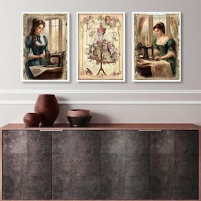 Kit 3 quadros vintage para atelier de costura 33x24cm Moldura: madeira branca Informações do produto tire todas as suas dúvidas no descritivo abaixo: decoração para quarto, sala, cozinha, escritório, área gourmet e muito mais. Chega de paredes vazias medidas - cada peça tem 33x24cm a4 . Material do papel - papel fotográfico brilhante de altíssima resolução acabamento - todos os quadros são acompanhados de uma película de acetato para proteção da imagem. - os quadros são embalados de forma segura com plástico bolha com camada dupla de acordo com o tamanho dos quadros. Garantia - garantia de 3 meses. Meu quadro chegou. Como posso fixá-lo Você precisa apenas de um martelo e um prego, pois os quadros já vão acompanhados de penduradores. Esta é a forma mais indicada. Caso prefira, você pode utilizar uma fita dupla face neste caso, sugerimos de alta qualidade para evitar que descole e seu quadro caia . Como posso limpar meu quadro A limpeza é feita como um móvel comum da sua casa. Apenas um pano seco ou espanador são suficientes para tal Ean: 7897458151551