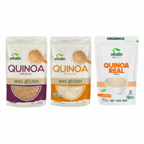 Kit 3 Quinoa Orgânica Vitalin: Em Grãos, Farinha, Em Flocos