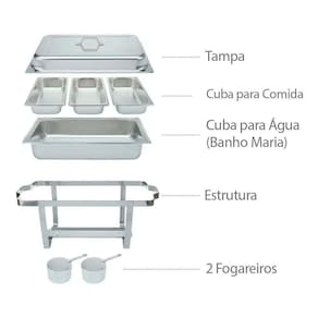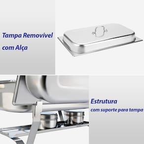 Kit 3 Rechaud Retangular 9 L Com 3 Cubas 1/3 Banho Maria