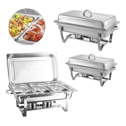 Kit com 3un rechaud retangular 9 litros com 3 cubas O rechaud retangular 9l brinovar ajuda a manter seus alimentos aquecidos por muito mais tempo após o preparo e além de manter suas refeições aquecidas durante o período da refeição, ele também traz um aspecto decorativo para o local, deixando o ambiente gourmet. Com diversas vantagens, o rechaud possui suporte dobrável, o que ocupa menos espaço para transporte de um evento para outro, conta também com alças laterais para facilitar o manuseio, a tampa removível conta com uma escora embutida no suporte para não atrapalhar na hora de servir. Ideal para quem tem um estabelecimento, vai fazer um evento ou sempre gosta de receber um número maior de pessoas em casa. Especificações técnicas: Marca: brinovar Cor: prata Acabamento: acetinado Formato: retangular Material: aço inoxidável 201 Capacidade total: 9 litros Dimensões do produto montado: Comprimento: 35 cm Largura: 63 cm Altura: 30 cm Quantidade de cubas para comida: 3 un Medida de cada cuba para comida: 17 l x 32 c cm Tipo de acendedor: fogareiro Quantidade de acendedor: 2 un Ambiente recomendado: buffet, refeitório, cozinha, festas : 90 dias Cuidados: Esta peça contém bordas cortantes, manusear com cuidado. Não use palha de aço, produtos químicos, não usar ácido muriático, água sanitária ou qualquer outro solvente para lavar objetos na pia. Nunca deixar objetos metálicos sobre a peça por períodos muito longos, para evitar a corrosão. Para manter o brilho do seu rechaut, recomendamos o uso da pasta para polir e remover manchas em superfícies de aço inoxidável. Itens inclusos: 9 cubas para comida gns 1/3 - 3 cubas de comida para cada rechaud 3 cubas para água banho maria - 1 cuba de água para cada rechaud 3 suportes - 1 suporte para cada rechaud 6 fogareiros - 2 fogareiros para cada rechaud 3 tampas - 1 tampa para cada rechaud Marca: Não Informado