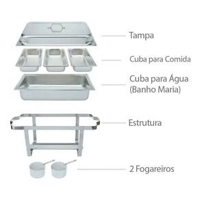 Kit com 3un rechaud retangular 9 litros com 3 cubas O rechaud retangular 9l brinovar ajuda a manter seus alimentos aquecidos por muito mais tempo após o preparo e além de manter suas refeições aquecidas durante o período da refeição, ele também traz um aspecto decorativo para o local, deixando o ambiente gourmet. Com diversas vantagens, o rechaud possui suporte dobrável, o que ocupa menos espaço para transporte de um evento para outro, conta também com alças laterais para facilitar o manuseio, a tampa removível conta com uma escora embutida no suporte para não atrapalhar na hora de servir. Ideal para quem tem um estabelecimento, vai fazer um evento ou sempre gosta de receber um número maior de pessoas em casa. Especificações técnicas: Marca: brinovar Cor: prata Acabamento: acetinado Formato: retangular Material: aço inoxidável 201 Capacidade total: 9 litros Dimensões do produto montado: Comprimento: 35 cm Largura: 63 cm Altura: 30 cm Quantidade de cubas para comida: 3 un Medida de cada cuba para comida: 17 l x 32 c cm Tipo de acendedor: fogareiro Quantidade de acendedor: 2 un Ambiente recomendado: buffet, refeitório, cozinha, festas : 90 dias Cuidados: Esta peça contém bordas cortantes, manusear com cuidado. Não use palha de aço, produtos químicos, não usar ácido muriático, água sanitária ou qualquer outro solvente para lavar objetos na pia. Nunca deixar objetos metálicos sobre a peça por períodos muito longos, para evitar a corrosão. Para manter o brilho do seu rechaut, recomendamos o uso da pasta para polir e remover manchas em superfícies de aço inoxidável. Itens inclusos: 9 cubas para comida gns 1/3 - 3 cubas de comida para cada rechaud 3 cubas para água banho maria - 1 cuba de água para cada rechaud 3 suportes - 1 suporte para cada rechaud 6 fogareiros - 2 fogareiros para cada rechaud 3 tampas - 1 tampa para cada rechaud Marca: Não Informado