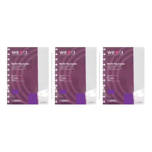 Kit com 3 Refis de Caderno Inteligente Pautado Grande 90g com 50 Folhas