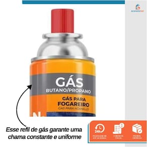 Compatibilidade: Pode ser utilizado em diversos modelos de fogareiros portáteis, desde que sejam compatíveis com o tipo de válvula do refil.