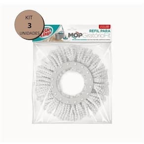 Kit 3 Refil Mop Flashlimp Microfibra Giratório Rodo Mágico
