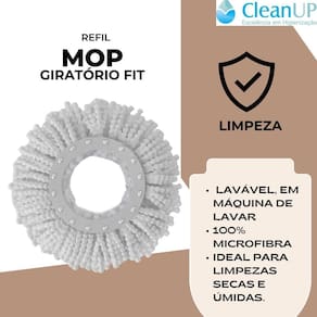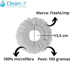 Kit 3 Refil Mop FlashLimp Microfibra Giratório Rodo Mágico O refil para mop giratório é lavável, em máquina de lavar, e 100% microfibra. Ideal para limpezas secas e úmidas. Os fios de microfibra possuem um alto poder de absorção, o que reduz ou até elimina o uso de produtos químicos. Seu material de alta qualidade limpa e absorve toda a sujeira com grande facilidade, apresentando um excelente poder de limpeza. -O que você vai receber- 03 - Refil de Microfibra para Mop 8 Litros Giratório Flash Limp, Diâmetro de encaixe: 13,5 cm. -especificações- -marca: FlashLimp; -peso: 100 gramas. -diâmetro de encaixe: 13,5 cm; -cor: Branco. -material: 100% microfibra -perguntas frequentes- -O produto é R: Sim, o produto é e vai acompanhado de . -serve no para o Mop Giratório Fit R: Sim, serve. -tags- Refil Mop LimpFlash ; Para ; Microfibra ; ; Giratório Fit ; Limpeza ; Geral ; Plus ; Giratorio