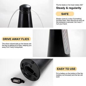 Kit 3 Repelente Armadilha Mata Espanta Mosca MosquitoRepelente de insetos natural, armadilha de inseto.Você pode finalmente desfrutar de uma conversa ao ar livre sem espantar moscas o tempo todo.Os pontos na hélice refratam/dobram a luz que assusta os insetos. Em suas pequenas mentes voadoras, as luzes coloridas dobrando não são normais na natureza e parece perigoso para eles. Eles sempre escolherão ir para outro lugar. As lâminas param se alguma parte do corpo as encostarem por exemplo dedo, e então retomem assim que o obstáculo for removido. O que o torna extremamente seguro.Pequeno e eficiente o mata moscas spin utiliza suas hélices para espantar moscas, mosquitos e insetos . Tem uma base larga e mesmo ligado é extremamente estável. É silencioso e sutil para não incomodar durante refeições ou encontros.- lâminas seguras se tocada- não utiliza produtos químicos- não possui cheiro- silencioso e seguroEspecificações:Material: abs+pvcTamanho: 25 x 9cmCor: pretoFonte de alimentação: 2 baterias aa não incluídas Pacote inclui:- 3 unidade s de espanta moscas spin