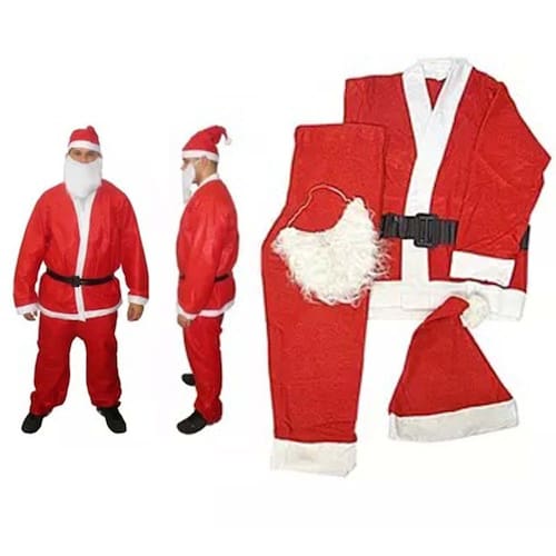 Acompanha 05 peças: Gorro, Blusa, Calça, Cinto e Barba Papai noel. Ótimo artigo natalino para quem deseja alegrar o natal com a família e amigos usando uma linda roupa de Papai Noel.