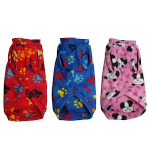 Kit 3 roupas de inverno para cachorro. - roupas de inverno para o seu pet; - super confortáveis no tecido soft; - as três roupas são nas cores: azul, rosa e vermelho; - seu pet além de muito estiloso ficara sem frio; Medidas - tamanho p: - medidas aproximadas - pescoço: 19 cm de circunferência; abdômen/tórax: 32 cm de circunferência; comprimento: 30 cm. Marca: Nicapet