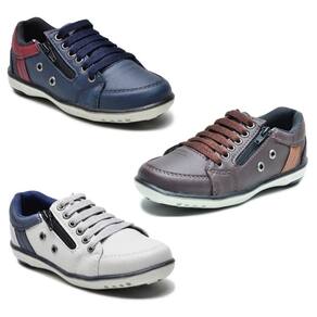 Kit 3 Sapatênis Casual Fechamento Zíper e Elástico Infantil - 30 - Branco
