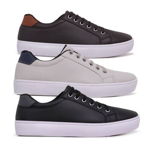 Kit 3 Sapatênis Casual Masculino Confort SF Ajuste Elástico - 40 - Marrom
