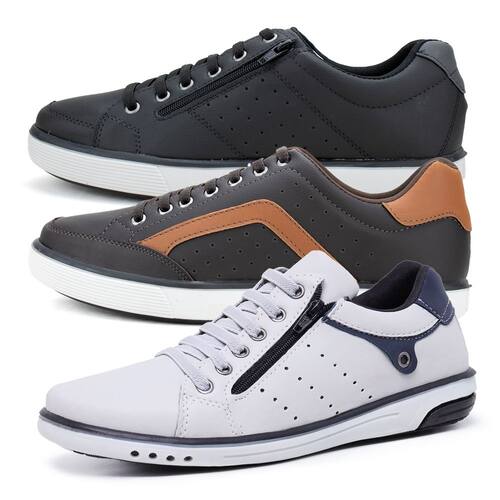Kit 3 Sapatênis Casual Masculino Fechamento Elástico e Zíper - 40 - Branco