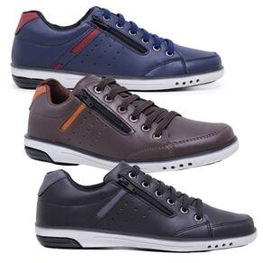 Kit 3 Sapatênis Casual Masculino Fechamento Zíper e Elástico 750 Especial - 45 - Marrom