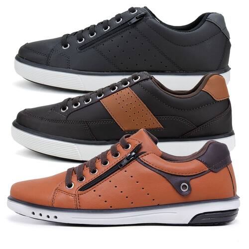 Kit 3 Sapatênis Casual Masculinos Fechamento Elástico Zíper - 42 - Laranja