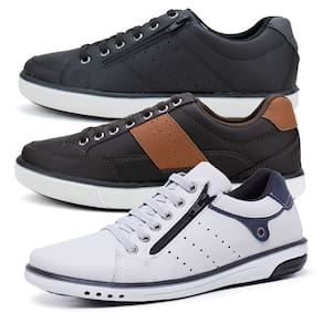 Kit 3 Sapatênis Casual Masculinos Fechamento Elástico Zíper - 40 - Branco