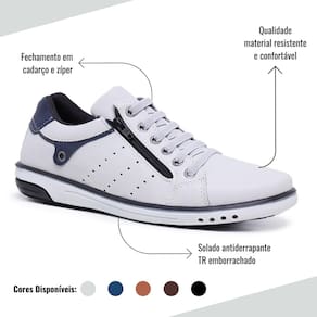 Kit 3 Sapatênis Masculino Casual Fechamento Elástico e Zíper - 42 - Branco