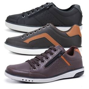 Kit 3 Sapatênis Masculino Fechamento Em Elástico e Zíper - 37 - Marrom Chocolate