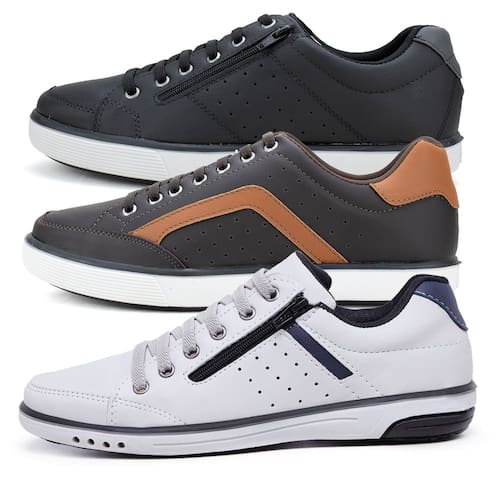 Kit 3 Sapatênis Masculino Fechamento Em Elástico e Zíper - 37 - Branco