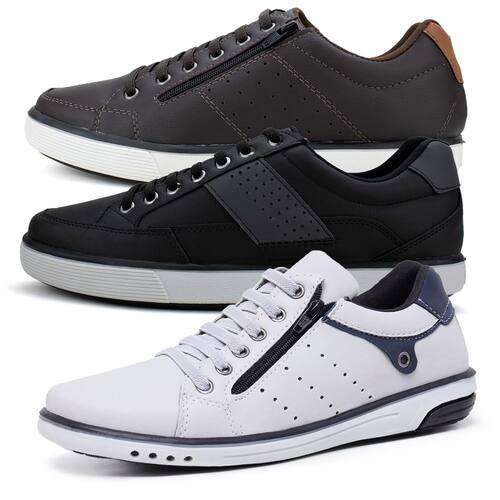 Kit 3 Sapatênis Masculinos Com Fechamento Elástico e Zíper - 44 - Marrom