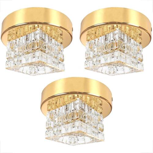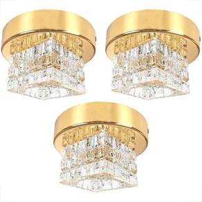 Kit 3 Spot Cristal Quadrado Sobrepor Dourado Plafon Lavabo Bet44 Plafon de Sobrepor Dourado de Cristal K9