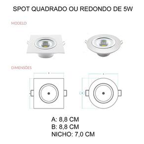 Spot LED de embutir Redondo, 5W, 3000k, Luz Quente, ideal para iluminação residencial ou comercial para destaque de objetos ou texturas em ambientes internos, longa durabilidade, led 5w substitui 35w incandescente, permite o uso com sensor de presença. Somente para uso interno ou abrigado.