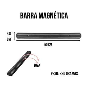 As dimensões da barra magnética são as seguintes: - Altura: 5 cm - Comprimento: 50 cm - Profundidade: 1,5 cm