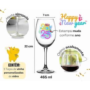 Contém: 3 Taças De Vinho Personalizadas Ano Novo