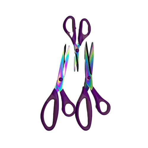 Kit 3 tesouras titânio lanmax costura artesanato patchwork Descrição: Este kit contém: 3 tesouras de titânio com cabo anatômico na cor rosa da marca lanmax , com as seguintes medidas: 1 tesoura 5,5 - 14 cm 1 tesoura 8,5 - 21 cm 1 tesoura 9,1/2 - 23 cm