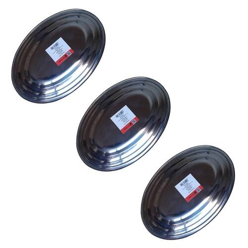 Kit 3 Travessa Bandeja Restaurante Oval Inox 30 cm para Porção Kit contendo 3 Bandejas Ovais em Inox medindo 30 x 21 x 2 cm