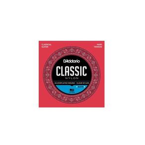 Encordoamento de nylon daddario ej27h para violão é ótima para iniciantes e estudantes. O jogo contém 3 primas de nylon translúcido e 3 bordões com enrolamento de fios de cobre com banho de prata sobre uma base de naylon, proporcionando um timbre encorpado e duradouro.
