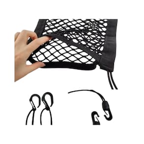 Aumente o espaço de armazenamento interior, podendo colocar garrafas, revista, guarda-chuva e alguns pequenos objetos. Mantenha o seu carro limpo e organizado, proporcionando uma proteção eficaz para a segurança do tráfego. Apresenta alta elasticidade e resistência, construção de malha leve faz com que seja fácil de embalar, desenho Universal, adequado para todos os carros.