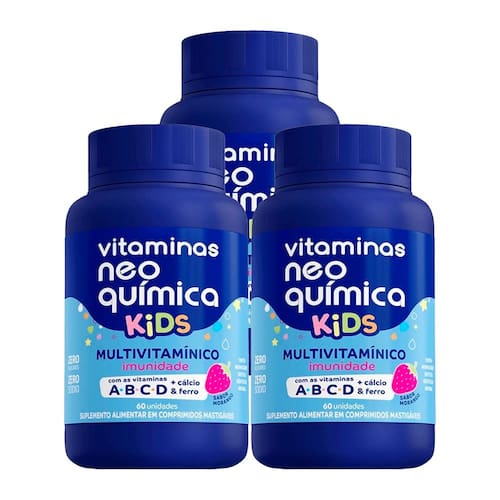 Kit 3 und Vitaminas Neo Química Kids Morango Mastigável c/ 60cpr - 100 g - Sem Sabor