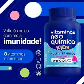 As Vitaminas Neo Kids são formuladas especialmente para atender as necessidades nutricionais das crianças a partir de 4 anos. Com sabor delicioso de morango e na forma de cápsulas mastigáveis, este suplemento proporciona uma maneira fácil e saborosa de garantir que os pequenos recebam as vitaminas essenciais para um crescimento saudável.
