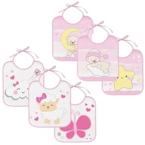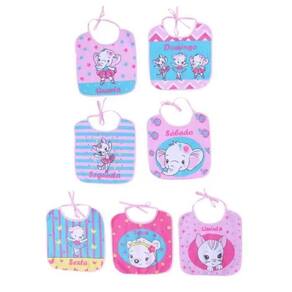 Características: Contém Kit com 3 peças; Forrado em PVC; Tecido flanelado; Estampa: Rosa / Feminino; Acabamento em viés e fechamento de amarrar; Medida: 20x19cm Tamanho ideal ; Composição: 100% Algodão + PVC macio e confortável .