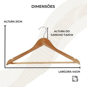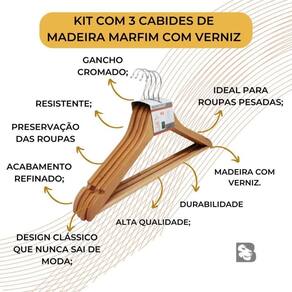 Kit 3 Unidades Cabides De Madeira Com Verniz Kit 3 Unidades Cabides De Madeira com Verniz Escolha perfeita para quem deseja organização, durabilidade e um toque de sofisticação no guarda-roupa. Fabricados em madeira resistente e revestidos com acabamento em verniz, esses cabides garantem elegância e proteção extra contra umidade, prolongando sua vida útil, com design robusto, cada cabide possui uma estrutura firme capaz de suportar diferentes tipos de roupas, desde peças leves como camisetas e blusas até trajes mais pesados como casacos e ternos. O formato anatômico ajuda a manter a forma das peças, evitando deformações nos ombros e garantindo um caimento perfeito ao vestir. O gancho metálico giratório permite maior praticidade ao pendurar e organizar as roupas, facilitando o manuseio no dia a dia. Além disso, os cabides contam com recortes laterais estratégicos para segurar vestidos, alças finas e outras peças delicadas, impedindo que deslizem e fiquem desorganizadas no armário, com acabamento envernizado, esses cabides não apenas garantem um visual sofisticado ao guarda-roupa, mas também evitam lascas e danos às roupas, tornando-se uma opção segura e durável. Ideal para quem busca funcionalidade aliada à elegância na organização do vestuário.