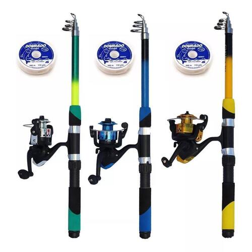Kit 3 varas de pesca com molinete ultra light cores diversas Kit composto por 3 de varas com molinete de alta qualidade e resistência, trazendo ao pescador bons momentos de pesca com baixo investimento. Vara telescópica fabricada em fibra de vidro, 1,70m e 12- 20 libras. Pesa apenas 105 gramas super leve. Com conexão de alumínio para fixar o molinete. Kit recomendado para até 10 kg Cores enviado conforme disponibilidade em . Molinete acompanha linha O kit contém: 3 - varas para molinete telescópica com passadores 1,70m 12-20lbs 3 - molinetes taue sy200 ou cmik ht200 carregado com linha Especificações técnicas: Vara - tamanho: 1,70 metros fechada - 49cm - capacidade: 12-20 lbs - material: fibra de vidro - peso: 105gramas - comprimento fechada: 49cm - cabo: 27cm - passadores: 3 + 1 ponteira - base do molinete: alumínio e plástico Cores disponíveis: amarelo, vermelho, verde e azul Molinete - material do corpo: grafite - material do carretel: grafite - manivela: intercambiável direito ou esquerdo - knob: plástico - sistema anti - reverso - velocidade de recolhimento: 5.2:1 - capacidade de linha: 0,18mm 245m / 0,20mm 200m / 0,25mm 125m - peso: 140 gramas Marca: Não Informado Ean: 7900010500107