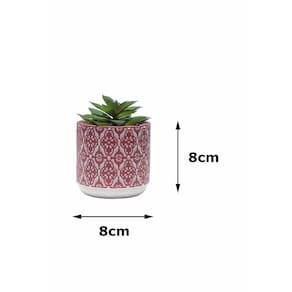 São 3 vasinhos feitos em cimento na cor pink, com plantinha artificial e pedrinhas.