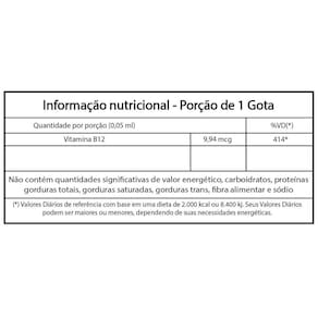 A Vitamina B12 Methyl em Gotas Unilife Sabor Morango 30 ml é um suplemento alimentar desenvolvido com ingredientes cuidadosamente selecionados para garantir qualidade e pureza. O produto contém metilcobalamina Vitamina B12 e água purificada, proporcionando uma opção prática para complementar a alimentação diária. Ingredientes Água purificada, metilcobalamina Vitamina B12 , agente de massa glicerina vegetal, acidulante ácido cítrico, regulador de acidez citrato de sódio, aroma idêntico ao natural de morango e conservantes sorbato de potássio e benzoato de sódio Informações adicionais Não contém glúten Produto vegano Modo de uso Sugere-se a ingestão de 1 gota ao dia, colocada sob a língua e ingerida em jejum. Agite bem antes de usar. Refrigerar após aberto. Informação nutricional Cada porção de 0,5 ml 1 gota contém 2,4 mcg de Vitamina B12, correspondendo a 100% da necessidade diária recomendada. Armazenamento Manter em local seco e fresco, ao abrigo da luz e umidade. Após aberto, consumir dentro do prazo de validade indicado na embalagem. Marca: Não Informado Ean: 7908609529041