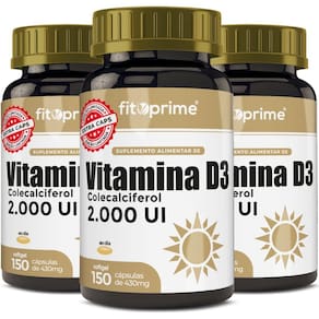 Kit 3 potes de Vitamina D3 2000UI Extra 150 Cápsulas FitoprimeA vitamina D auxilia na formação de ossos e dentes.A vitamina D auxilia na absorção de cálcio e fósforo.A vitamina D auxilia no funcionamento do sistema imune.A vitamina D auxilia no funcionamento muscular.A vitamina D auxilia na manutenção de níveis de cálcio no sangue.A vitamina D auxilia no processo de divisão celular.Ingredientes:Óleo de girassol, colecalciferol e antioxidante dl-alfa tocoferol. Composição da cápsula: gelatina, água purificada, umectante glicerina e corante natural cúrcuma. NÃO CONTÉM GLÚTEN.Sugestão de uso:Ingerir 1 cápsula ao dia.Conservação:Após aberto, manter a embalagem bem fechada e armazenar em local fresco, seco e ao abrigo de luz.Produto lacrado para sua proteção. Não utilizar em caso de violação. Manter fora do alcance de crianças.produto Dispensado de Registro Conforme RDC 240/2018.