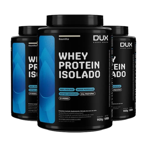 Kit 3 Whey Protein Isolado Dux Baunilha 900g Modo de Uso: Adicione 29 g 1 dosador de Whey Protein Isolado em 250 ml de água. Misture bem usando uma coqueteleira até obter uma mistura homogênea. Consuma imediatamente após o preparo. Ingredientes: Whey Protein Isolado Recomendações: Ideal para ser consumido pré/pós-treino, ao acordar, entre as refeições, ou conforme orientação do nutricionista. Prevenções: Não deve ser como substituto de uma alimentação equilibrada. Mantenha fora do alcance de crianças. Consulte um de saúde antes de iniciar qualquer suplemento, especialmente se tiver condições de saúde pré-existentes. Modo de Conservação: Armazene em local seco e fresco, longe da luz direta e da umidade. Mantenha o produto bem fechado para preservar suas propriedades. Marca: Não Informado Ean: 7908609539897